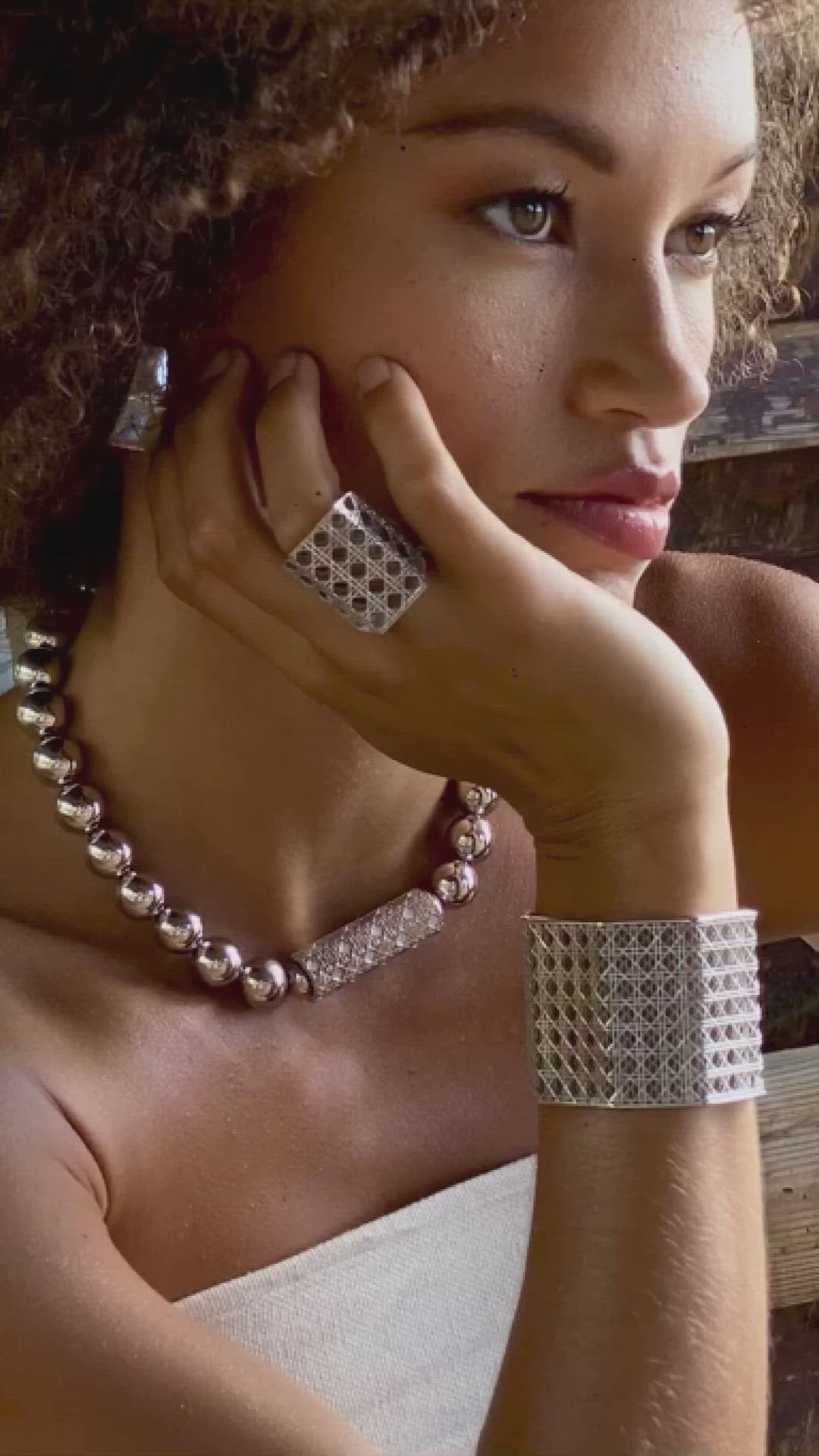 Intricately crafted into the iconic Cane pattern, this bracelet is the ultimate statement piece. When worn alone, the Cuff sparks conversation. When stacked, these cuffs turn heads. Mix and match pieces from the MoAnA Luu Jewelry collection to create a unique style for both men and women.